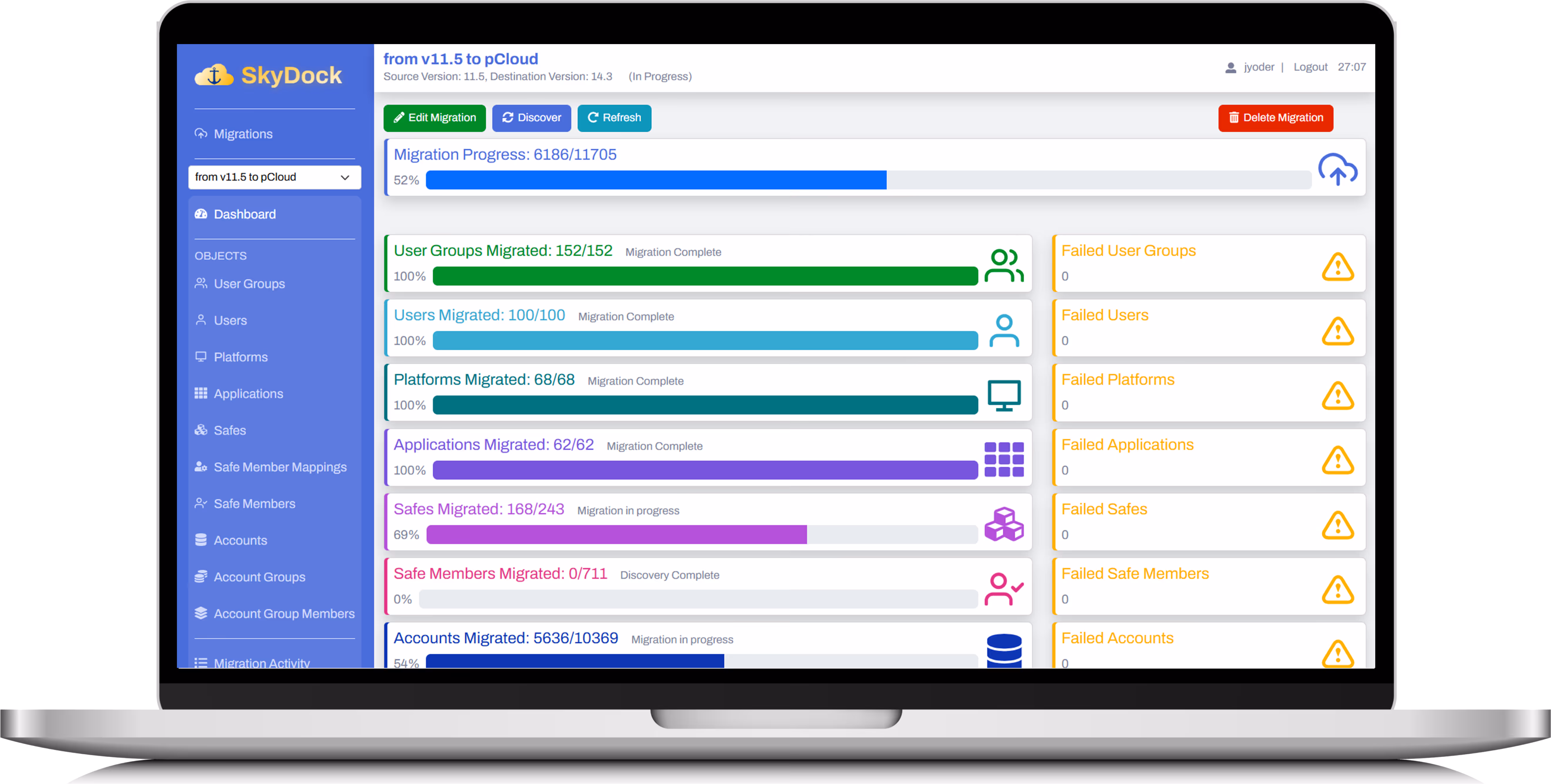 SkyDock is a specialized migration tool designed to automate and simplify migrations between CyberArk environments.